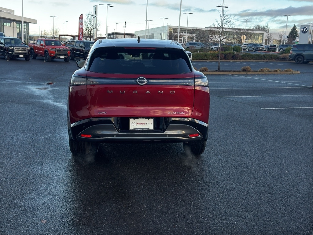 Start the Nissan Murano from inside with remote start. The installed navigation system will keep you on the right path. The leather seats in it are a must for buyers looking for comfort, durability, and style. This unit comes equipped with Android Auto for seamless smartphone integration on the road. It is pure luxury with a heated steering wheel. See what's behind you with the back up camera on the Nissan Murano. This model offers Apple CarPlay for seamless connectivity. Bluetooth technology is built into this 2026 Nissan Murano , keeping your hands on the steering wheel and your focus on the road. The vehicle's Forward Collision Warning feature alerts drivers to potential front-end collisions. The vehicle excites both driver and bystanders with a polished red exterior with racy lines. The Nissan Murano is equipped with all wheel drive. Set the temperature exactly where you are most comfortable in this 2026 Nissan Murano . The fan speed and temperature will automatically adjust to maintain your preferred zone climate.
